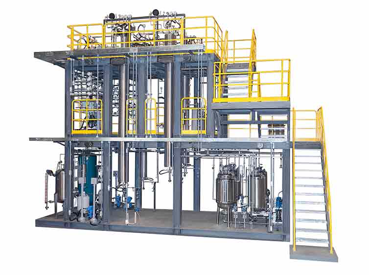 裝置主要是三管平行模擬工業(yè)單管反應(yīng)器,催化劑裝填量為2L×3,主要原料為丙烯、水和空氣,裝置包括三合一熔鹽加熱爐、產(chǎn)品水洗吸收塔、蒸餾塔、酸度控制、尾氣增壓循環(huán)等。設(shè)備的關(guān)鍵是熔鹽爐的均熱效果、管道的防堵、吸收酸度的控制、丙烯爆炸極限的控制與防范。